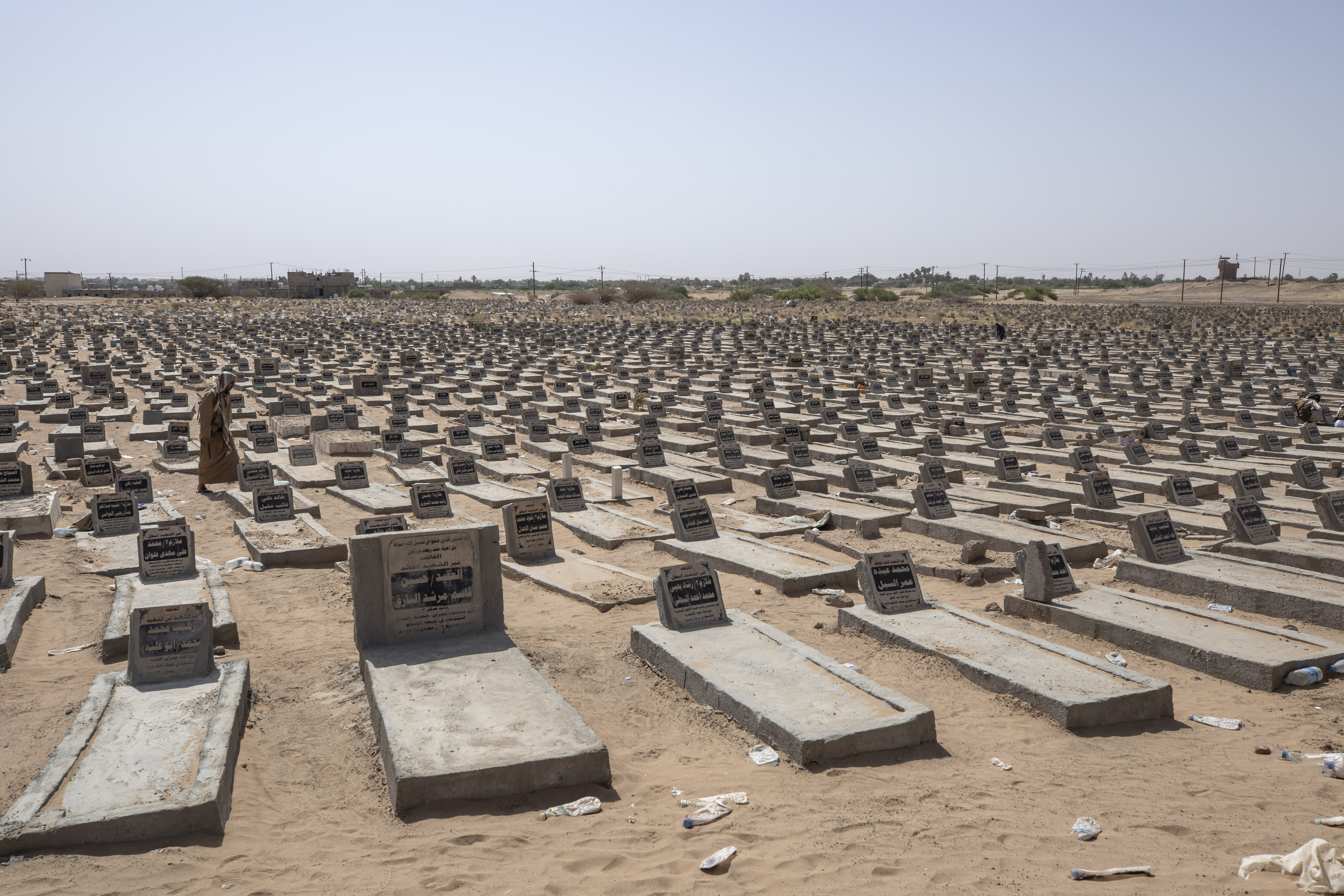 “We bury between 10 to 15 people every day, mostly martyrs in the war,” said Mohammed Saeed Nasser, a guard at the cemetery.
