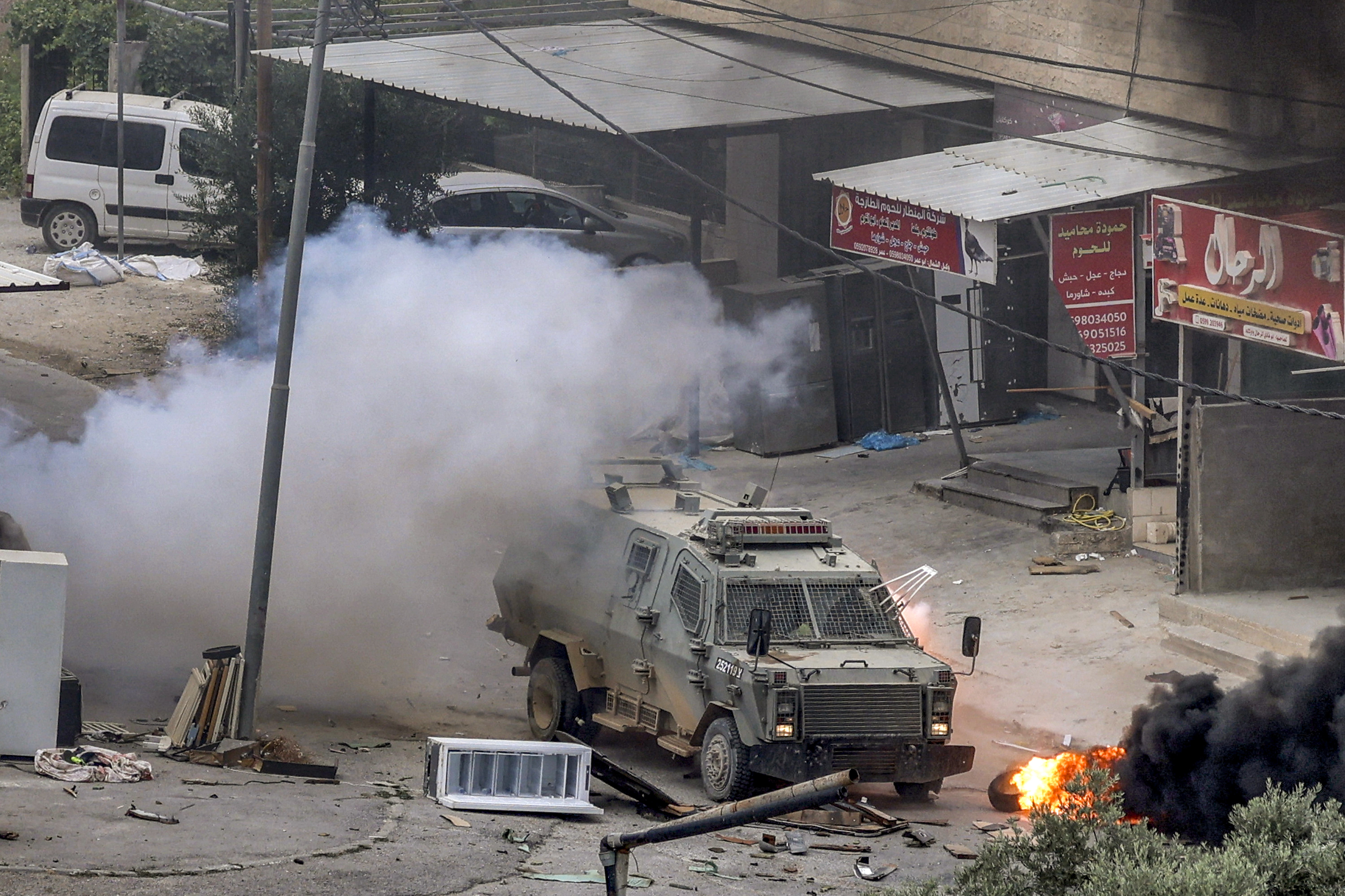 As the Israeli military vehicles were exiting the camp, the army’s statement said, “a military vehicle was hit by an explosive device, damaging the vehicle,” after which military helicopters shot towards the gunmen to help the soldiers exit.