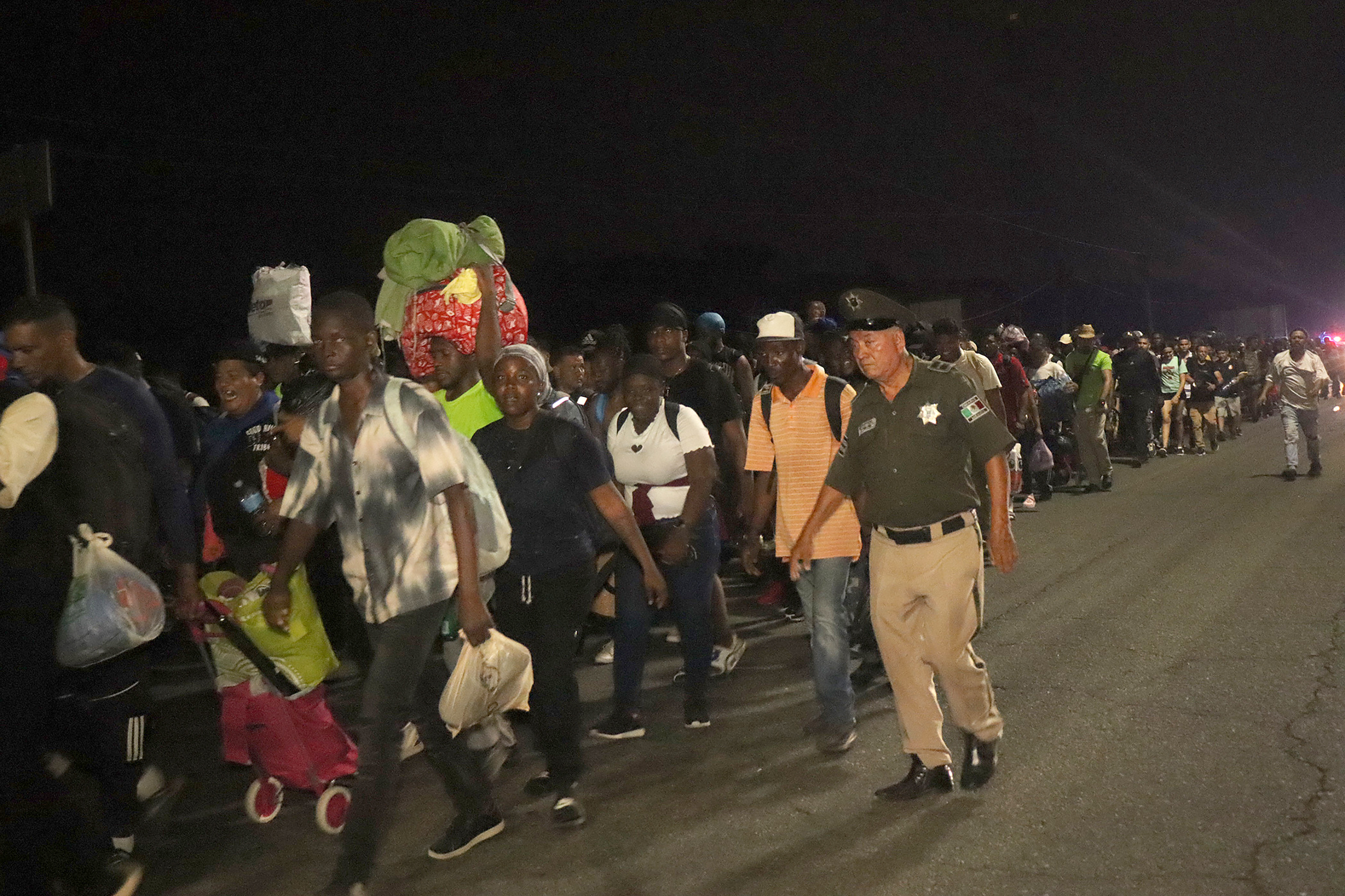 On Tuesday night, the group left Tapachula, near Mexico’s border with Guatemala, and they continued walking into Wednesday.