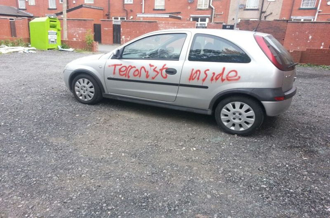 Salim Bhorat, a community activist in Bolton, a town in northwestern England with a large Muslim minority, said one mosque had been vandalised with spray paint, dog excrement had been thrown at another, and a woman had been attacked in the street. A car outside the mosque was also daubed with the words “Terrorist inside”.