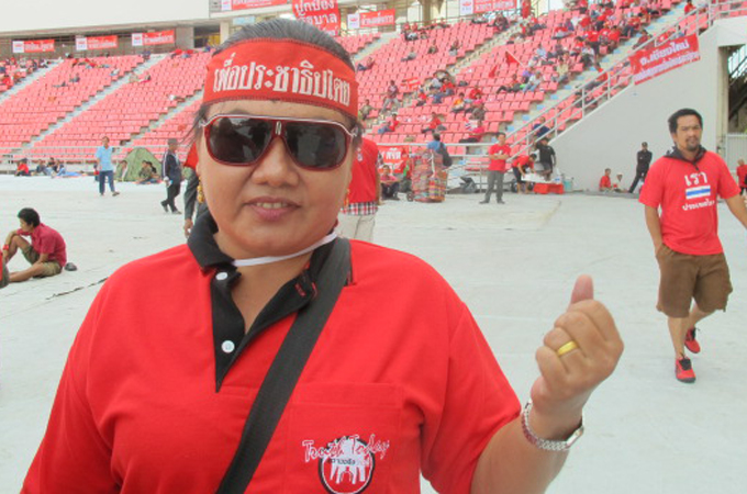 | Tanit Vandee, 44, housewife, at the Red Shirt base at a stadium in a Bangkok suburb |