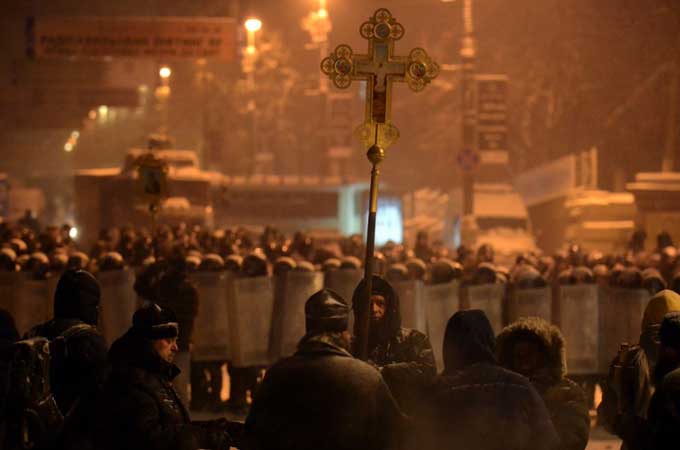 Priests join activists on the front lines of Ukraine’s protests, as officials fear a coup ousting the nation’s leaders.