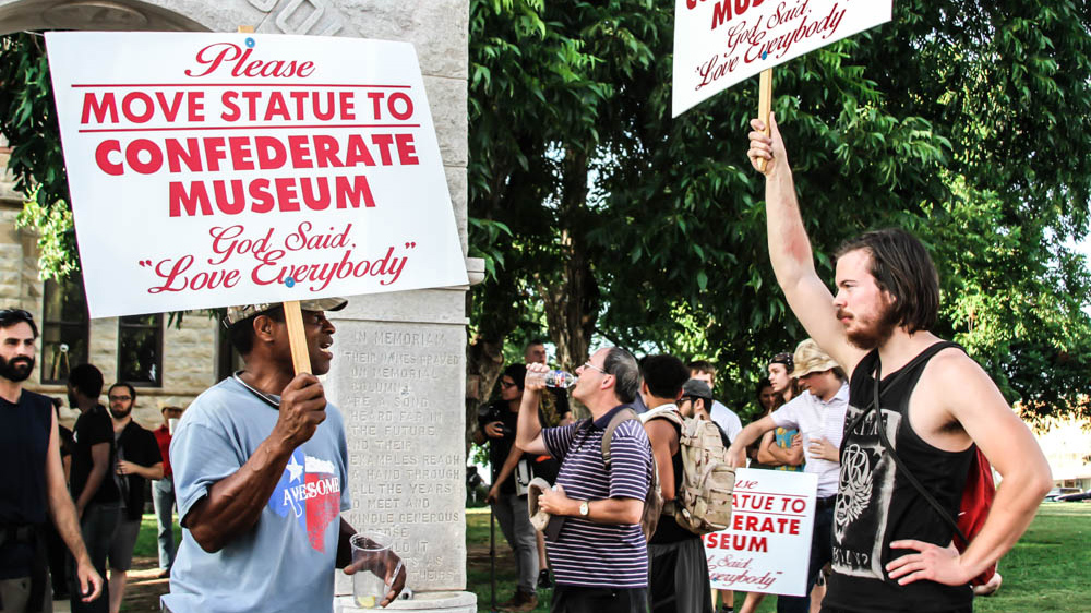 Denton residents protest confederate symbols while elsewhere other monuments are still being erected.