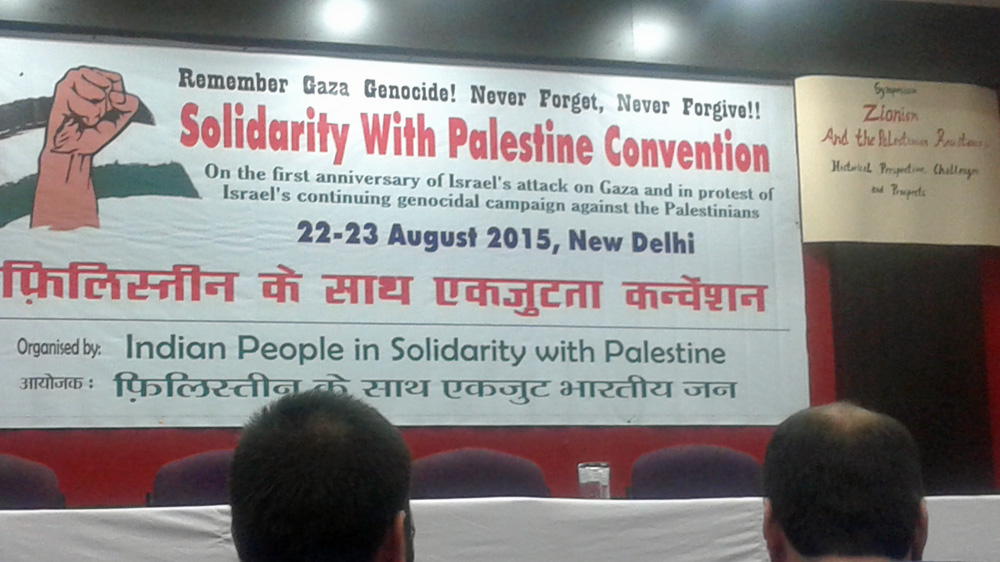 Critics lament New Delhi’s fading pro-Palestinian stance at solidarity convention as Israel relations flourish.