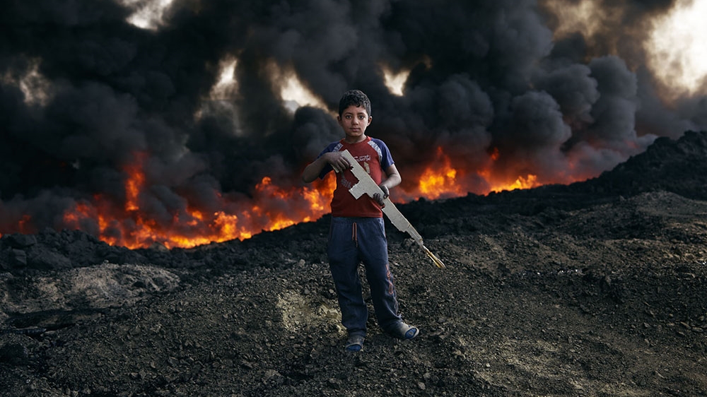 ISIL also littered the areas around the raging oil fires with landmines and explosives, adding a further element of danger to Oussama’s already treacherous job.