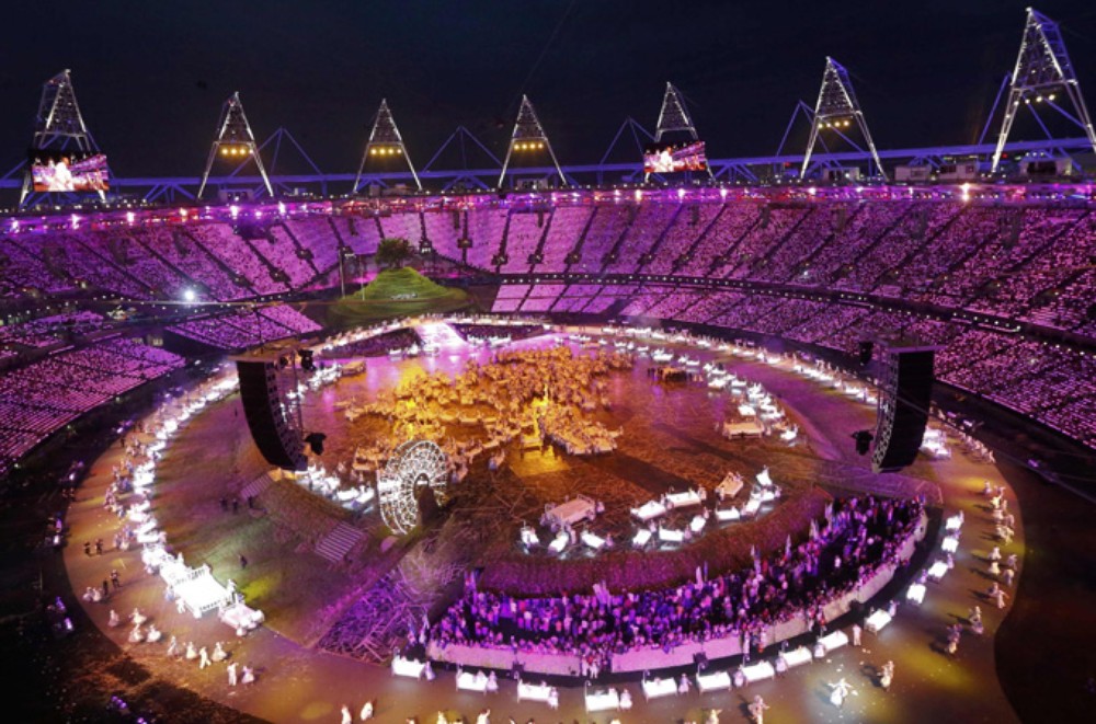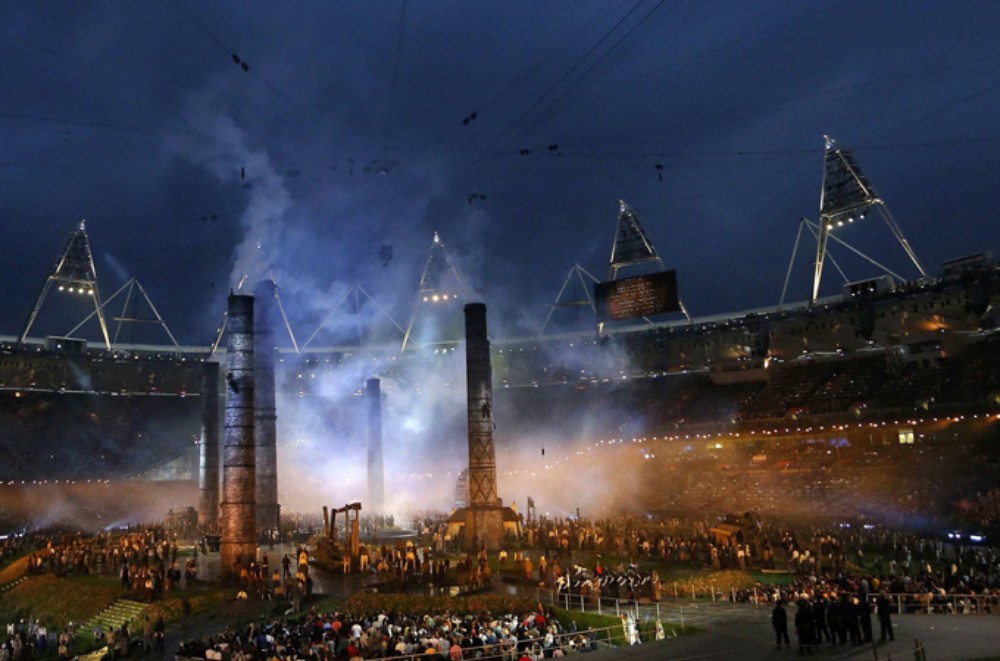 Three-hour spectacle opens two-week sports festival as crowd of 60,000 people gather in London’s Olympic stadium.