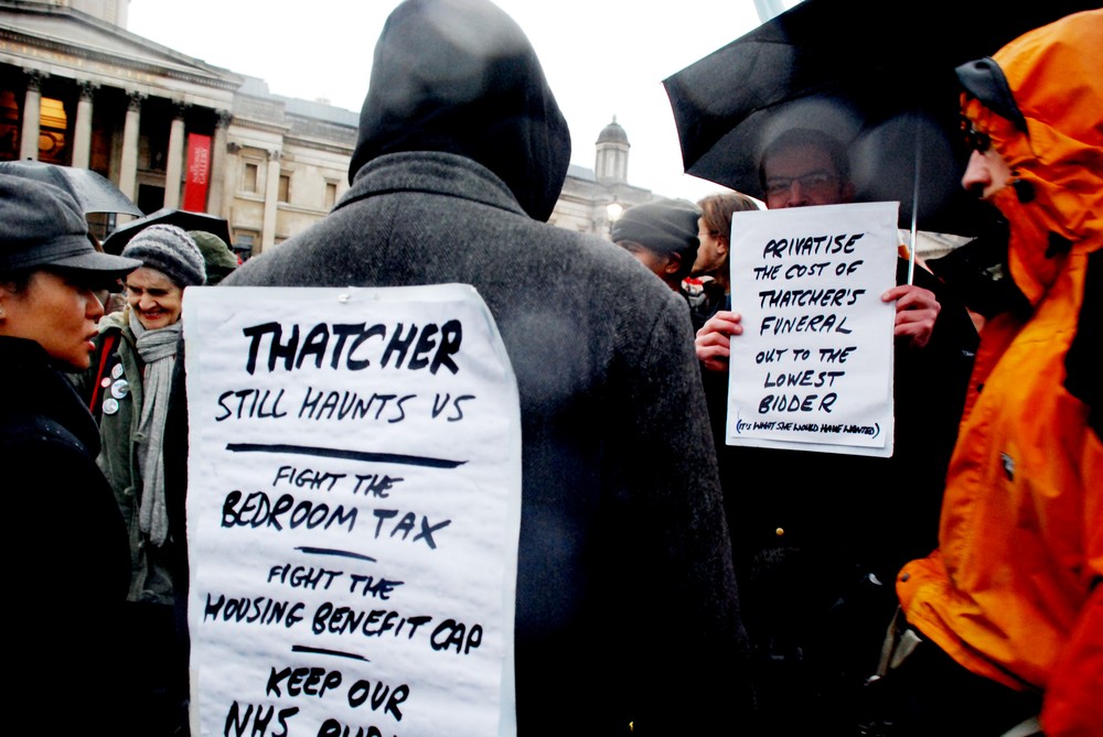 London, United Kingdom – Anarchist group Class War has, for decades now, been circulating the idea that, on the first Saturday after the death of former British Prime Minister Margaret Thatcher, those opposed to her divisive leadership should head for London’s Trafalgar Square to celebrate her demise.