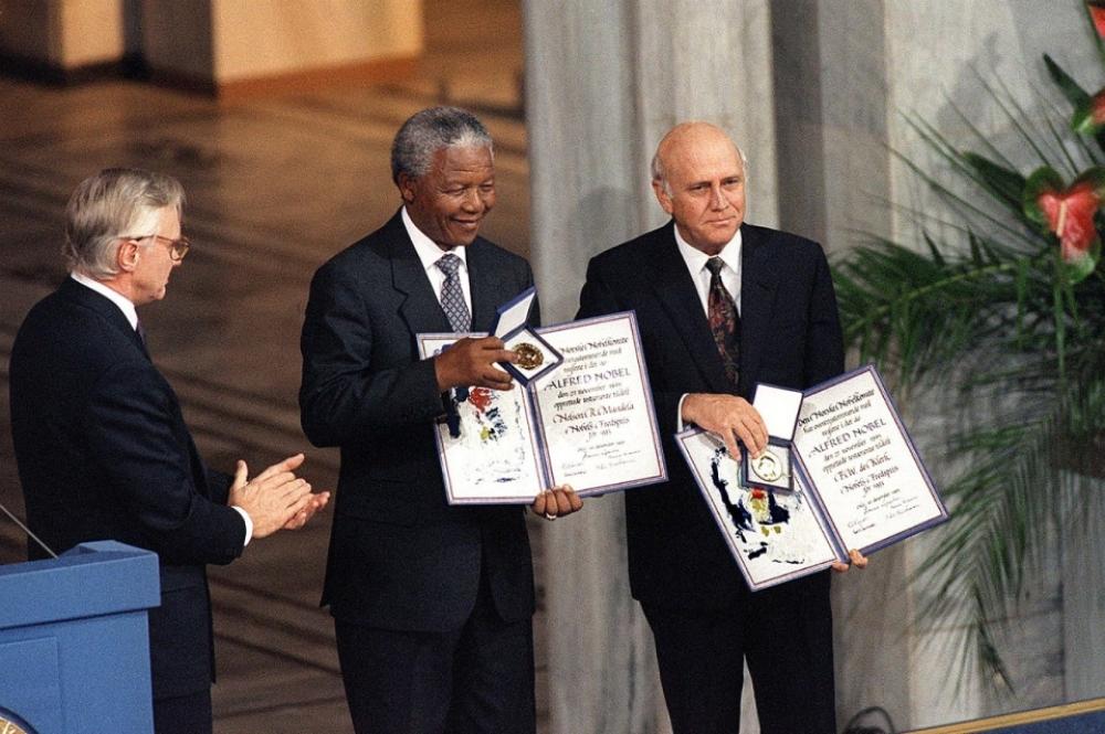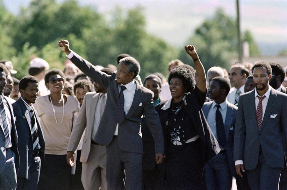 He was released on February 11, 1990, after lengthy negotiations with South Africa‘s leaders. He went on to tour the world, drumming up further international support for sanctions against the race-based apartheid regime. After a series of talks with then-president FW de Klerk, the pair agreed on an interim constitution – which led to a multiracial general election. Mandela won with 62 percent of the vote.