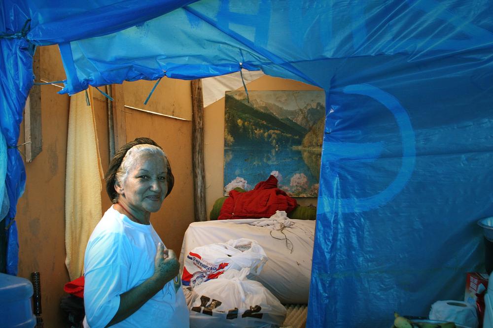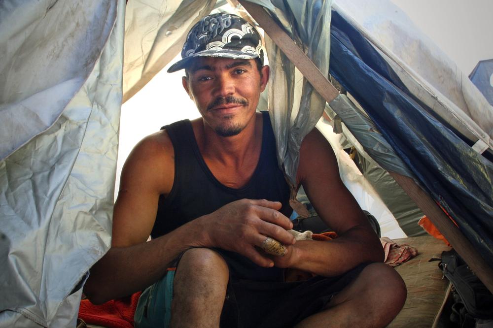 Claudio Lessa Souza, 31, was eager to show journalists how little he had inside his tent: shoes, a mattress, and a blanket.