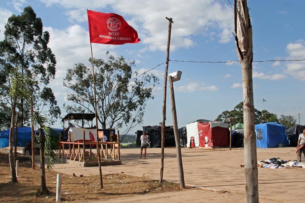 A red Homeless Workers Movement flag flies at the camp. The organisation is one of the most contentious groups the government has had to deal with ahead of the World Cup.