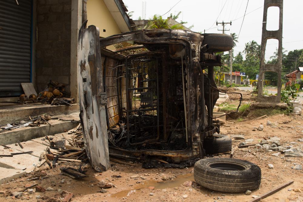 In two days of rioting and looting four people have been killed, including a Tamil security guard, and 80 others injured, the majority being from the Muslim community. Over 60 homes and businesses were set on fire in the two days while several mosques were also damaged.