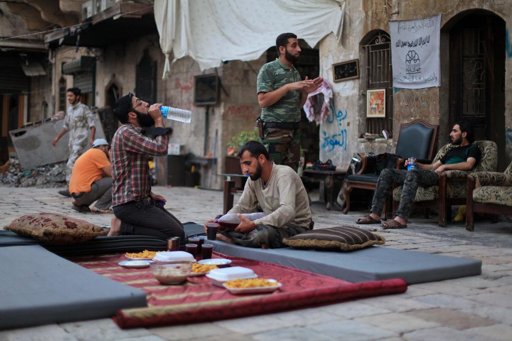 Some Syrian muftis, Muslim legal experts, stated that it is permissible for fighters in Syria to eat and drink during Ramadan because they are fighting in a war. But the fighters in Aleppo were nevertheless fasting for 16 hours a day, from dawn to dusk.