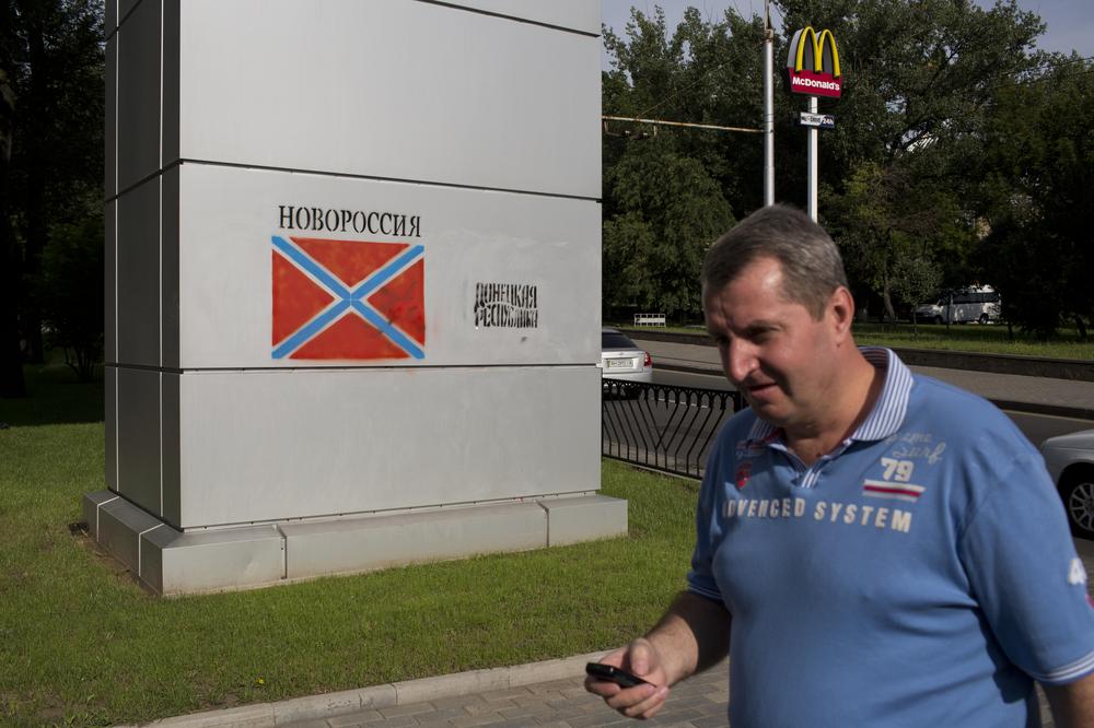 Novorossiya stencils have begun appearing all over the city. The term, used by Russian President Vladimir Putin in an address in April, was historically used to denote parts of Ukraine and southern Russia during the Russian Empire, and has since been adopted by rebels to denote the federation of the Lugansk and Donetsk People(***)s Republics.