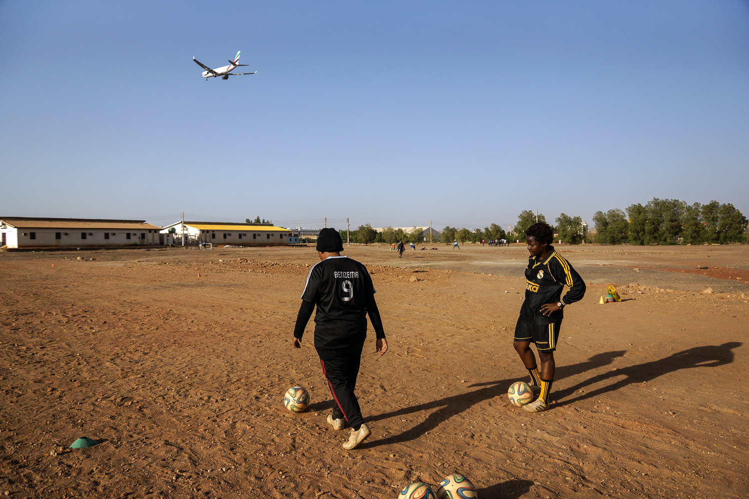 Khartoum, Sudan – Under the blistering afternoon sun, two footballers train on a dusty, uneven pitch. Planes heading to the nearby Khartoum airport pass overhead, but nothing can pierce the stifling heat of this shadeless spot of parched, rocky earth.