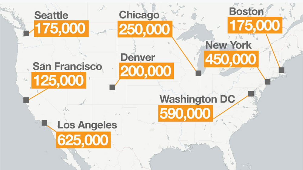 Largest anti-Trump marches in the United states by city.