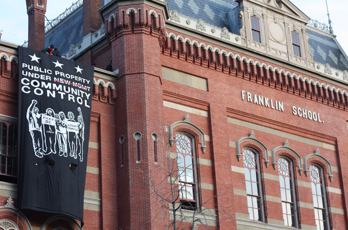 In November, activists associated with theOccupy movement took over an abandoned homeless shelter in downtown Washington, DC, that had been sold off to a private developer, hanging a banner that declared it under “community control“. Though removed by police hours later, the issue of public land being sold off to for-profit interests was acknowledged and discussed in the city for the first time in years.