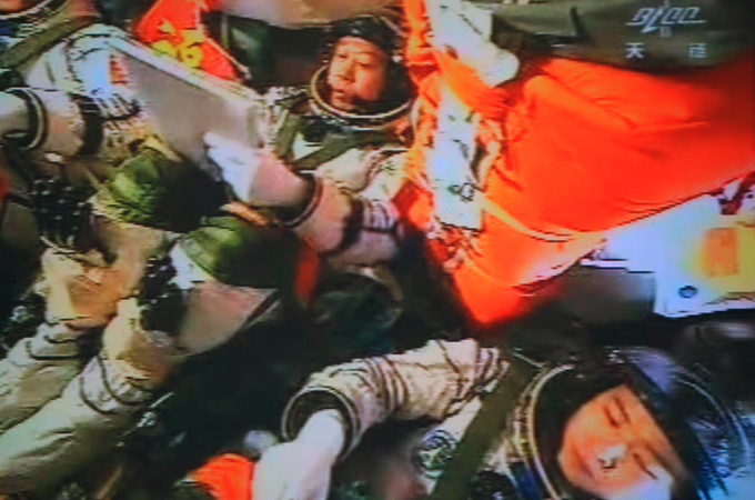 Two of the taikonauts then successfully entered the module; the first time China has been able to transfer crew between two orbiting craft.