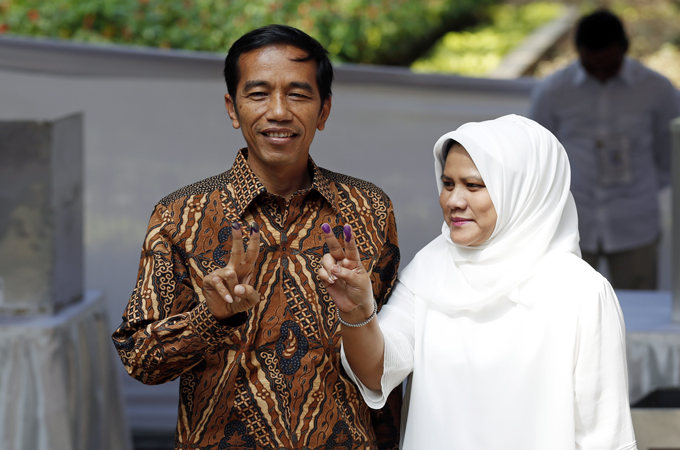 Jokowi and his wife, who just returned from a pilgrimage to Mecca, had earlier voted in a park swarmed by supporters and media in Jakarta’s leafy Menteng neighbourhood.