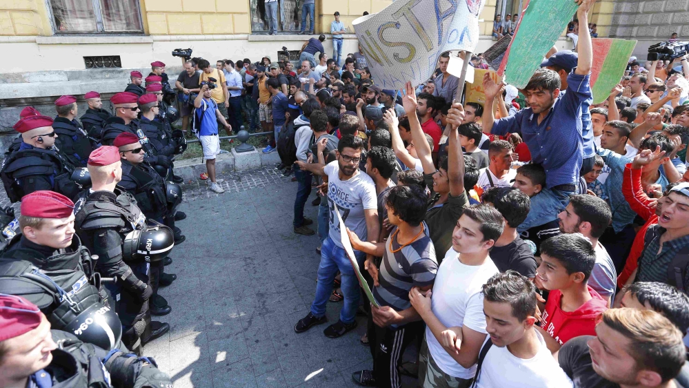![Protesting refugees from Afghanistan and Syria hold up a child wrapped in blankets as a reminder of the horrors they have fled while demonstrating in Budapest [Reuters]](/wp-content/uploads/2015/09/fde02a01ccc34fcb94f541a796d8c5b9_18.jpeg?quality=80)