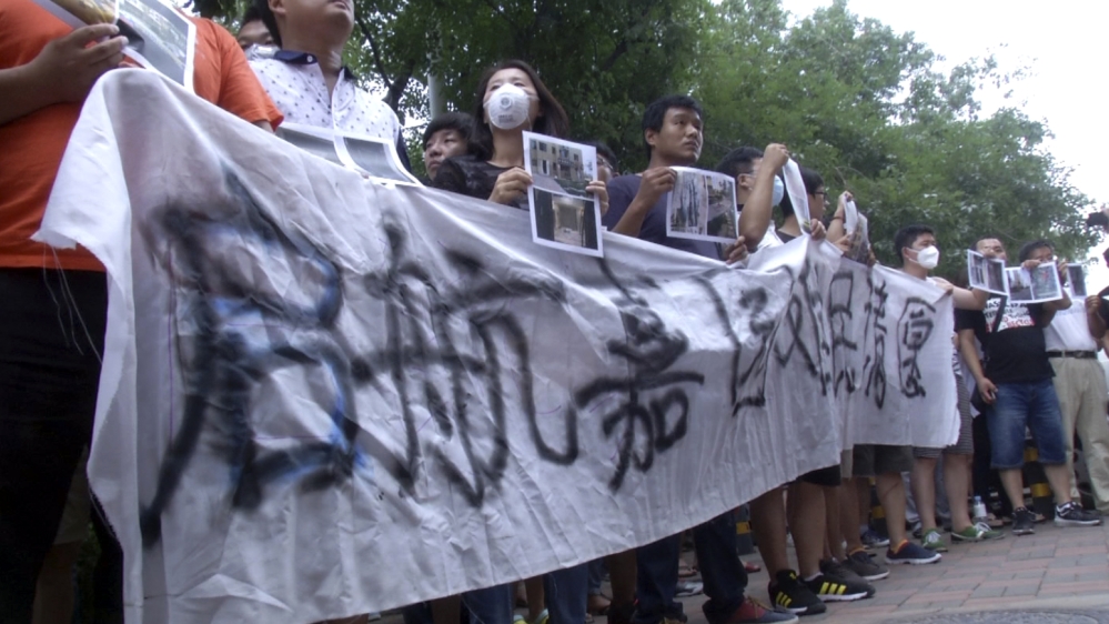 Al Jazeera’s Adrian Brown, reporting from Tianjin, said that dozens of soldiers looked on as the protesters gathered, making no attempt to stop them, nor the local journalists covering the event.