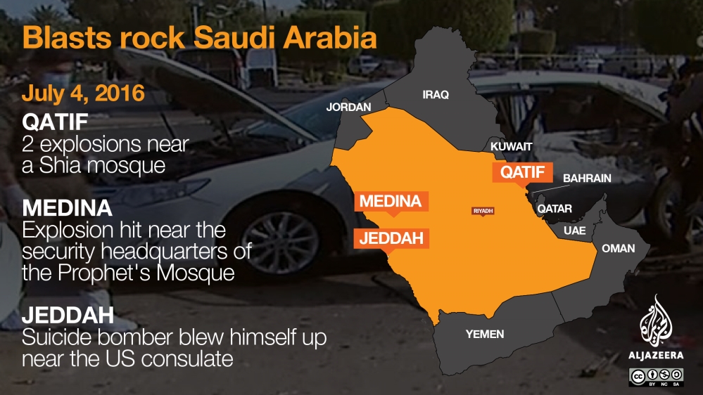 About the same time as the Medina blast, two other explosions struck near a mosque in the eastern city of Qatif on the Gulf coast.