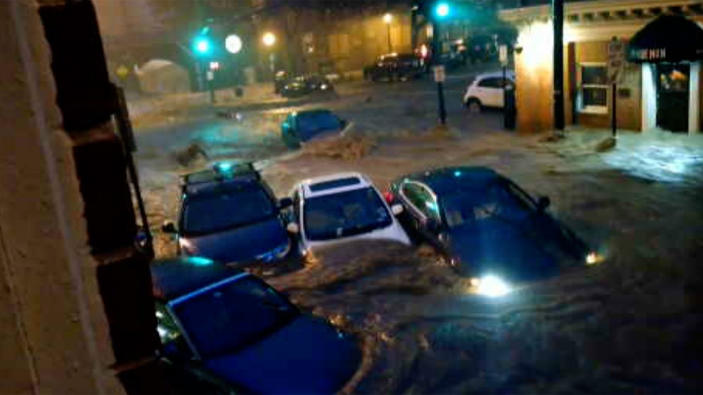 Ellicott City in the state of Maryland was hit by 165 millimetres of rain, most of which fell in just 2 hours between 7 and 9pm on Saturday night.