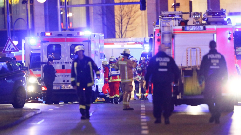 Photos and video posted to social media showed rescue workers at the scene of the incident in the centre of Berlin where the truck had eventually stopped.