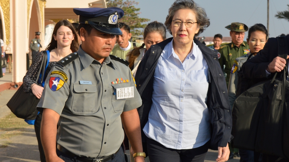 ![UN special rapporteur on Myanmar Yanghee Lee, centre, departs from Sittwe to visit areas of northern Rakhine State on Saturday [AFP]](/wp-content/uploads/2017/01/11ec43703032431b835951cb958f2de1_18.jpeg?quality=80)