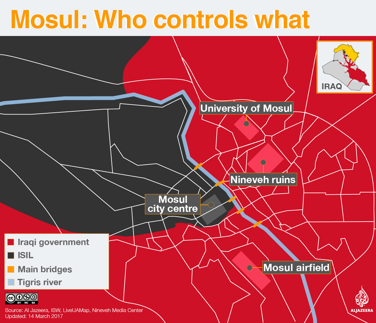 Iraqi government forces, backed by US advisers, artillery and air support, have cleared the east and half of western Mosul and are now focused on controlling the Old City.