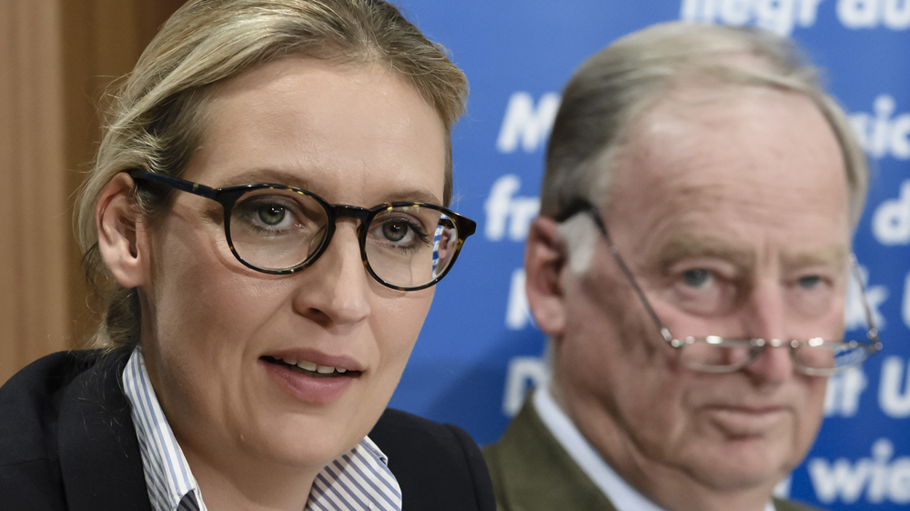 The party, which advocates the closure of Germany’s borders and the introduction of a minimum quota for deportations, could now become the biggest opposition force in the national assembly if the current coalition of Merkel’s Christian Democratic Union party and the Social Democratic Party (SPD) is returned, as polling indicates is likely.