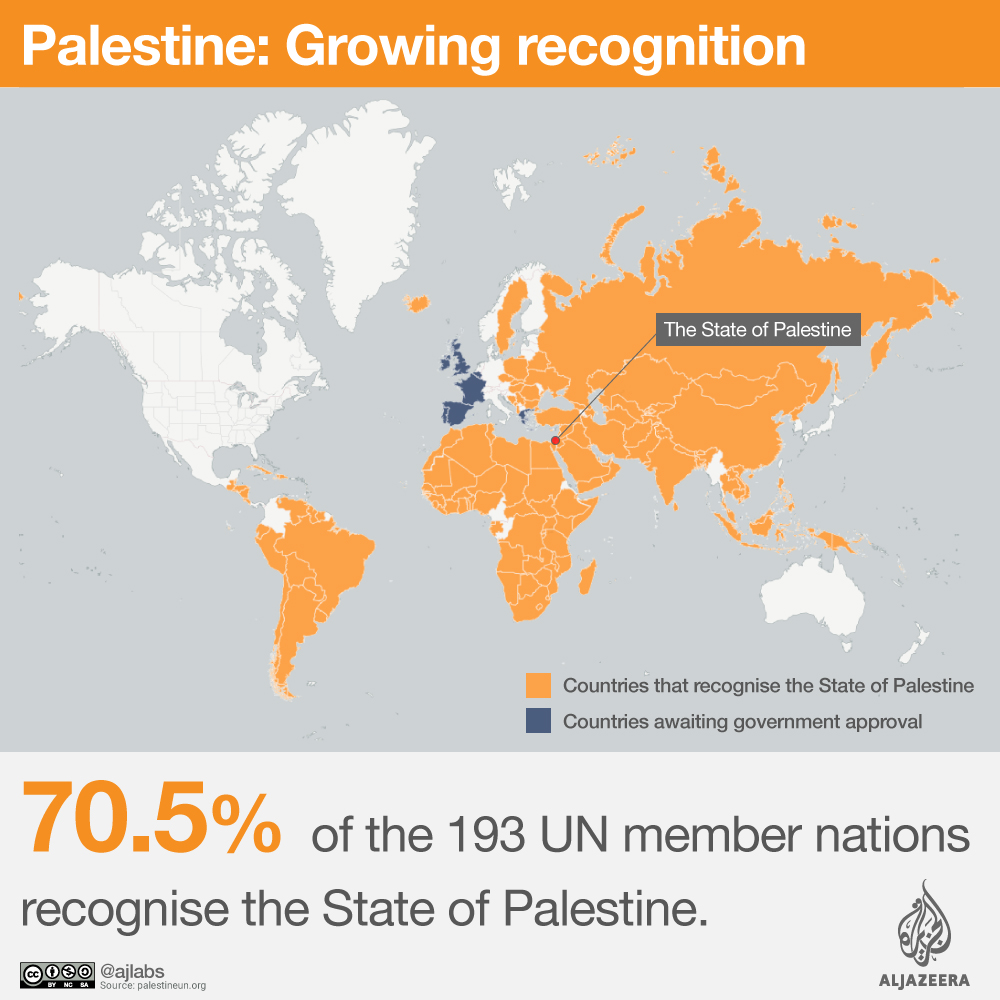 “Palestine today is a truth, a reality anchored in history and the international system. It was recognised by the international community in 2012, 138 states have recognised it and its flag is raised at the United Nations,” he said.