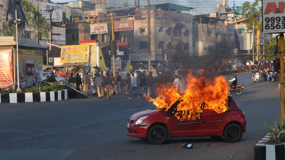 On Tuesday, protests in the state of Gujarat turned violent with a mob burning dozens of motorcycles and vandalising cinema halls, following which state police opened fire on the crowd.