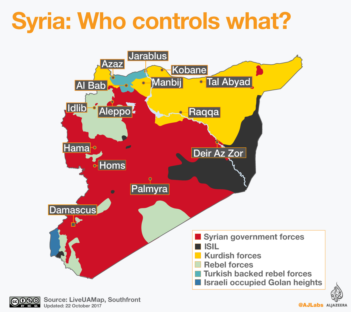 The Syrian government forces have been losing territory to the opposition and various armed groups, including ISIL, since the beginning of the conflict in 2011. But the Russian intervention in 2015 turned the tide in President Bashar al-Assad’s favour. At the end of 2016, the Syrian army took Aleppo, one of the main battlegrounds in the conflict.