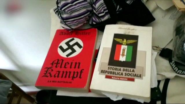 Italian police said they seized Adolf Hitler’s “Mein Kampf,” and other white supremacist publications linked to Nazism and fascism, from the Traini’s home.
