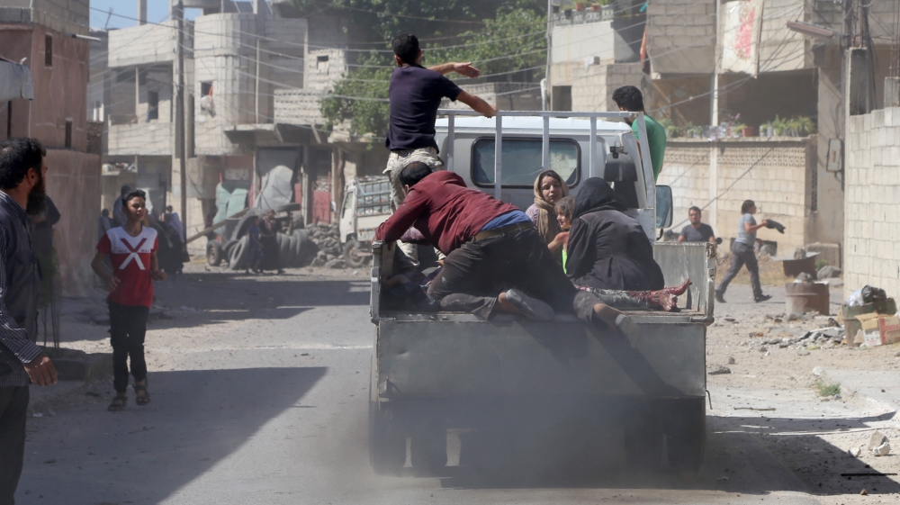 “The Jordanian borders are closed and the western suburbs are also under attack,” Adam told Al Jazeera. “We have nowhere to go.”