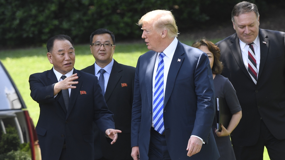 Following the meeting, Trump and US Secretary of State Mike Pompeo emerged from the White House alongside Kim Yong-chol and his aides, lingering for a few minutes at the White House lawn while talking to the North Korean officials before waving them goodbye.