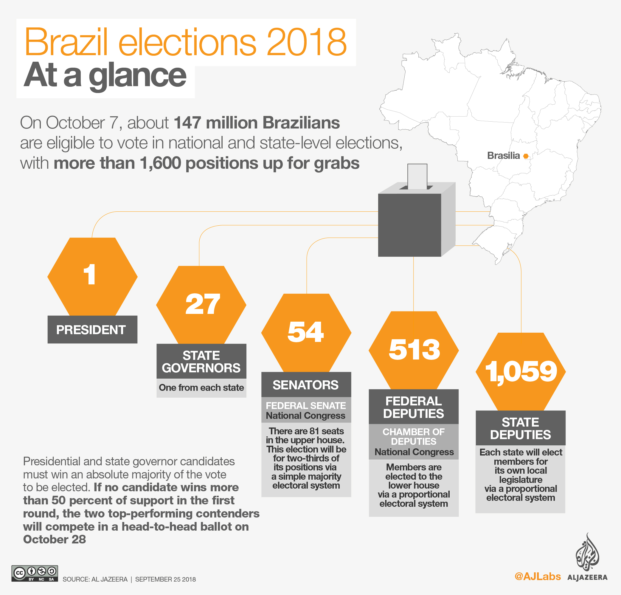 About 147 million people are expected to vote on Sunday, with participation compulsory for “literate” Brazilians aged 18 to 70.