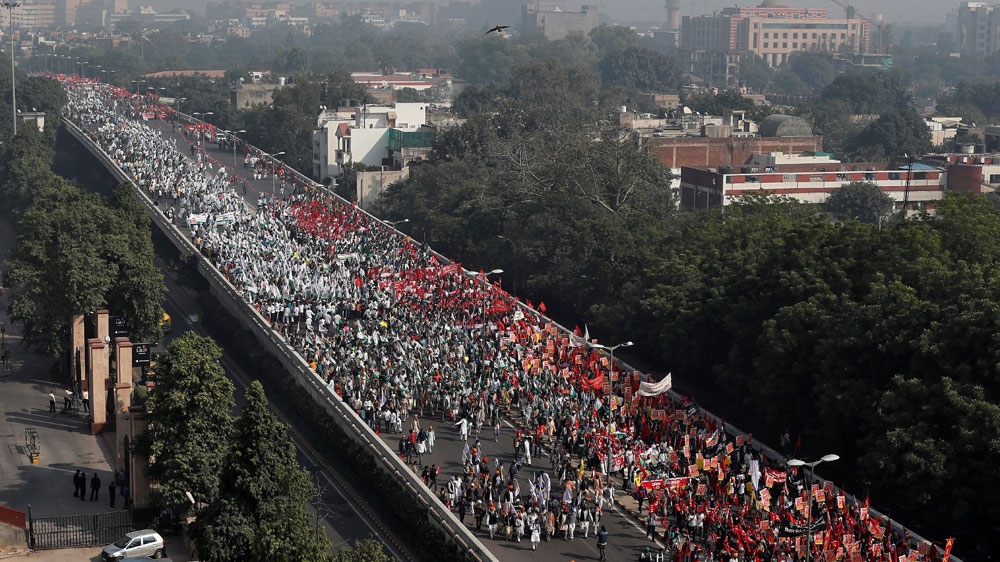 On Wednesday, some 50,000 people marched in the eastern city of Kolkata in solidarity with farmers.