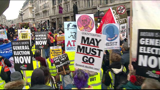 Protesters marched through London, demanding a general election. And, in Sheffield in the north of England, protesters called for a second referendum.