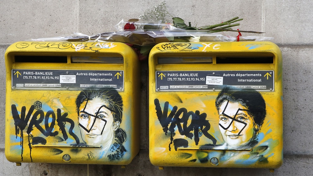 In addition, portraits of the late Simone Veil, a Holocaust survivor and a European Parliament president who died in 2017, drawn on mailboxes were daubed with swastikas.