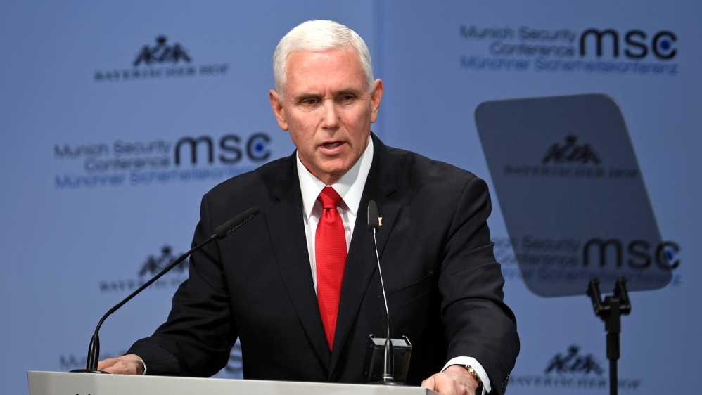On Saturday, Pence said the “time has come” for the US’s European partners to “withdraw from the Iran nuclear deal and join us as we bring the economic and diplomatic pressure necessary to give the Iranian people, the region, and the world the peace, security, and freedom they deserve”.