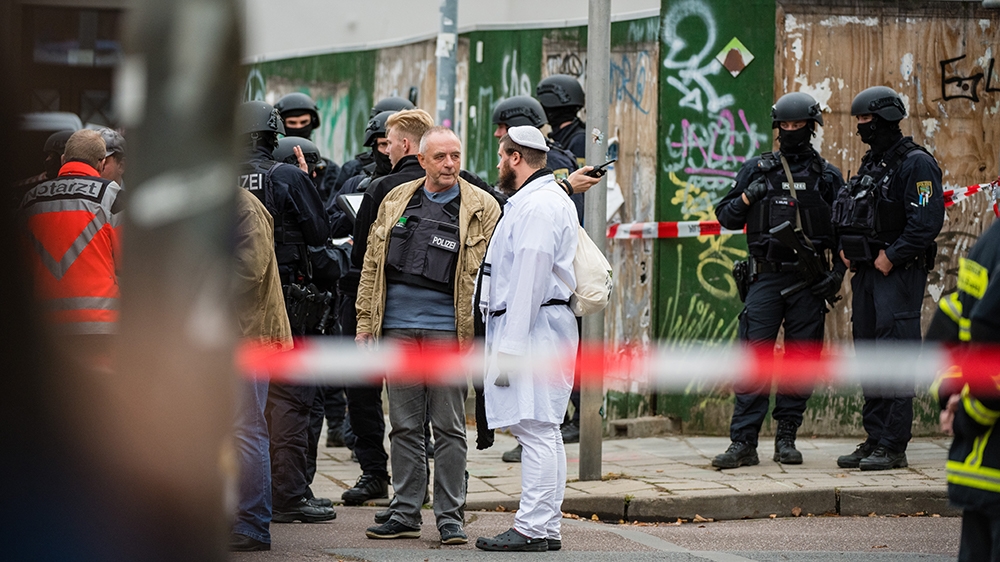 “Our forces have detained one person,” the Halle police wrote in a tweet. “We remain alert, however. We have deployed forces in and around Halle and are trying to stabilise the situation until we have all the relevant information.”