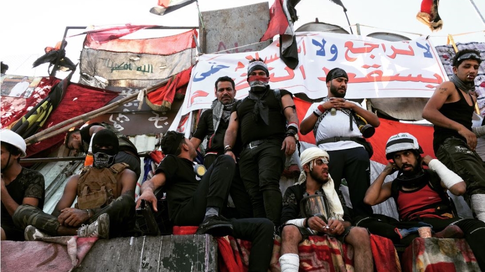 “We are free men and we govern ourselves, not Iran,” said one man with an Iraqi flag wrapped around his mouth and nose, referring to Tehran’s perceived involvement in Iraqi politics. Mostly hailing from Baghdad’s working-class areas, these young Iraqis were born in the midst of the US-led invasion in 2003. Their childhoods coincided with the country’s bloody sectarian violence, while for many their adult years have largely been unemployed.