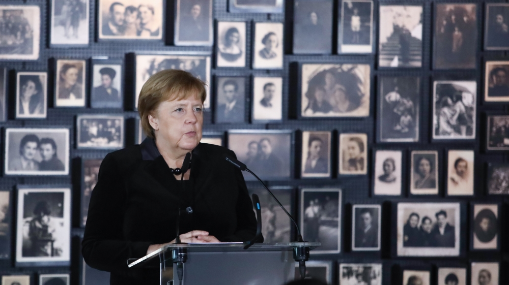 The 65-year-old chancellor said Germany’s federal government and its 16 states would provide a 60 million euros ($66.1m) donation to help conserve the site where an estimated 1.1 million people were killed, most of them Jews.