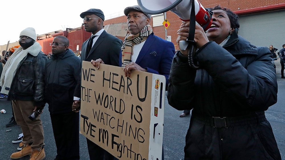 Congresswoman Yvette Clarke and other activists hold a vigil outside the Metropolitan Detention Center [Kathy Willens/AP Photo]