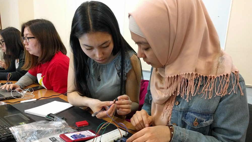 Aidarbekova’s 14-year-old sister attends an after-school technology course for 14 to 17-year-old girls, and her 11-year-old sister is desperate to follow in her sisters’ footsteps.