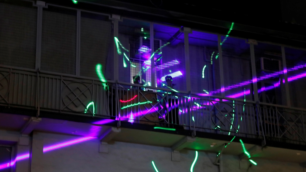 During the early days of the protests, a video showing dozens of laser pointers aimed at the police went viral.