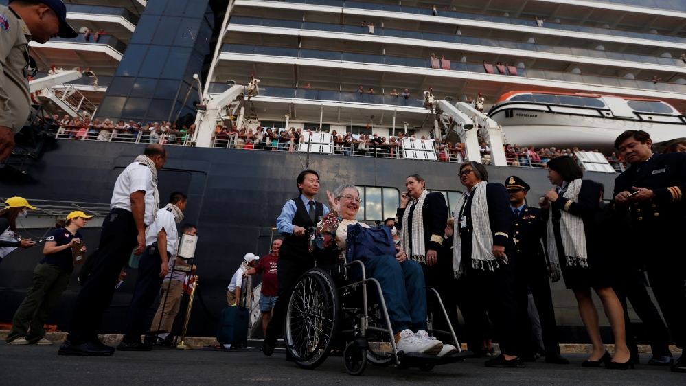 Nearly 1,500 passengers on board MS Westerdam allowed to disembark in Cambodia after five countries deny the ship entry.