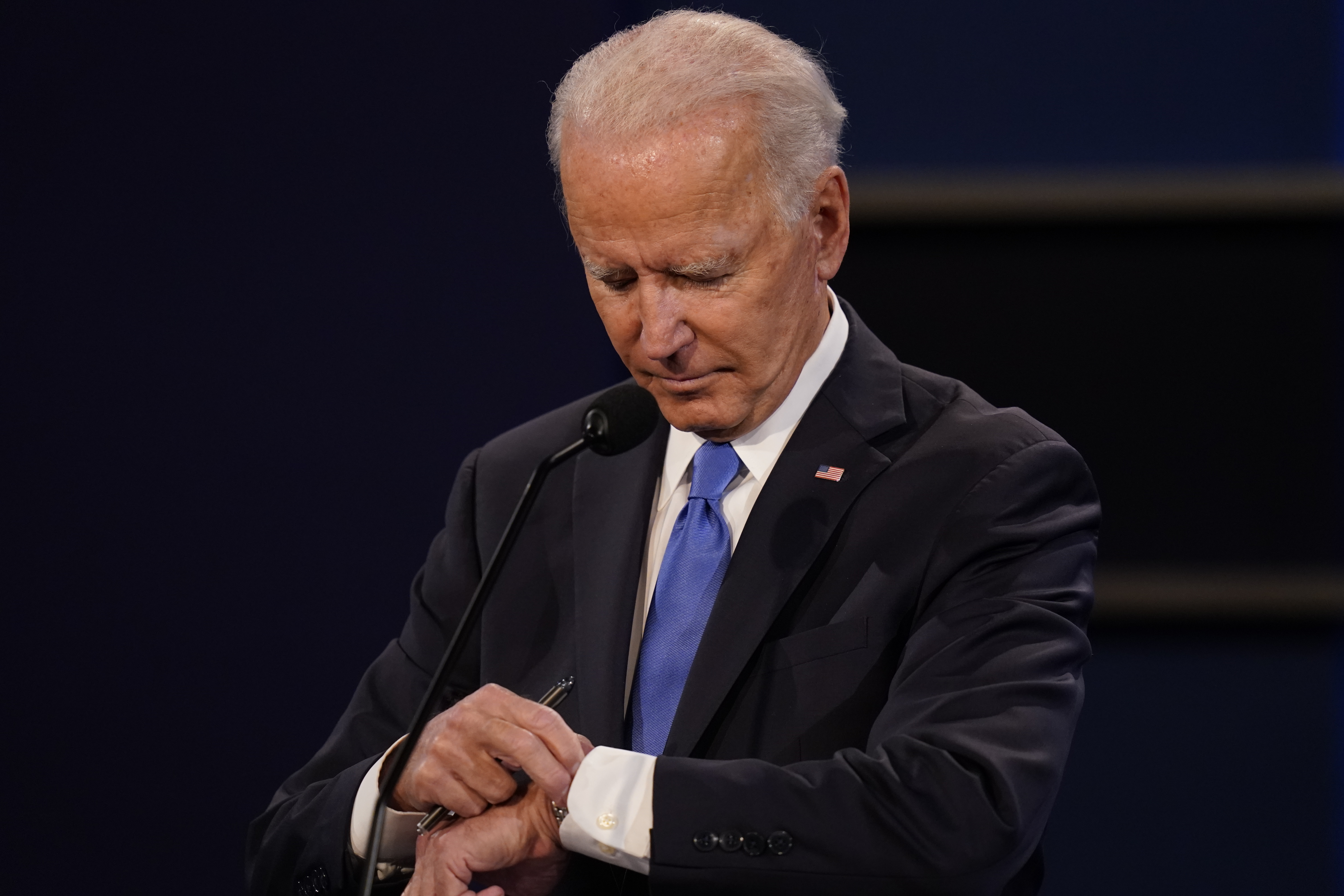 With about eight minutes to go in the debate, Biden glanced at his watch to check the time, sparking a reaction on social media from some who thought it conveyed impatience or was improper.
