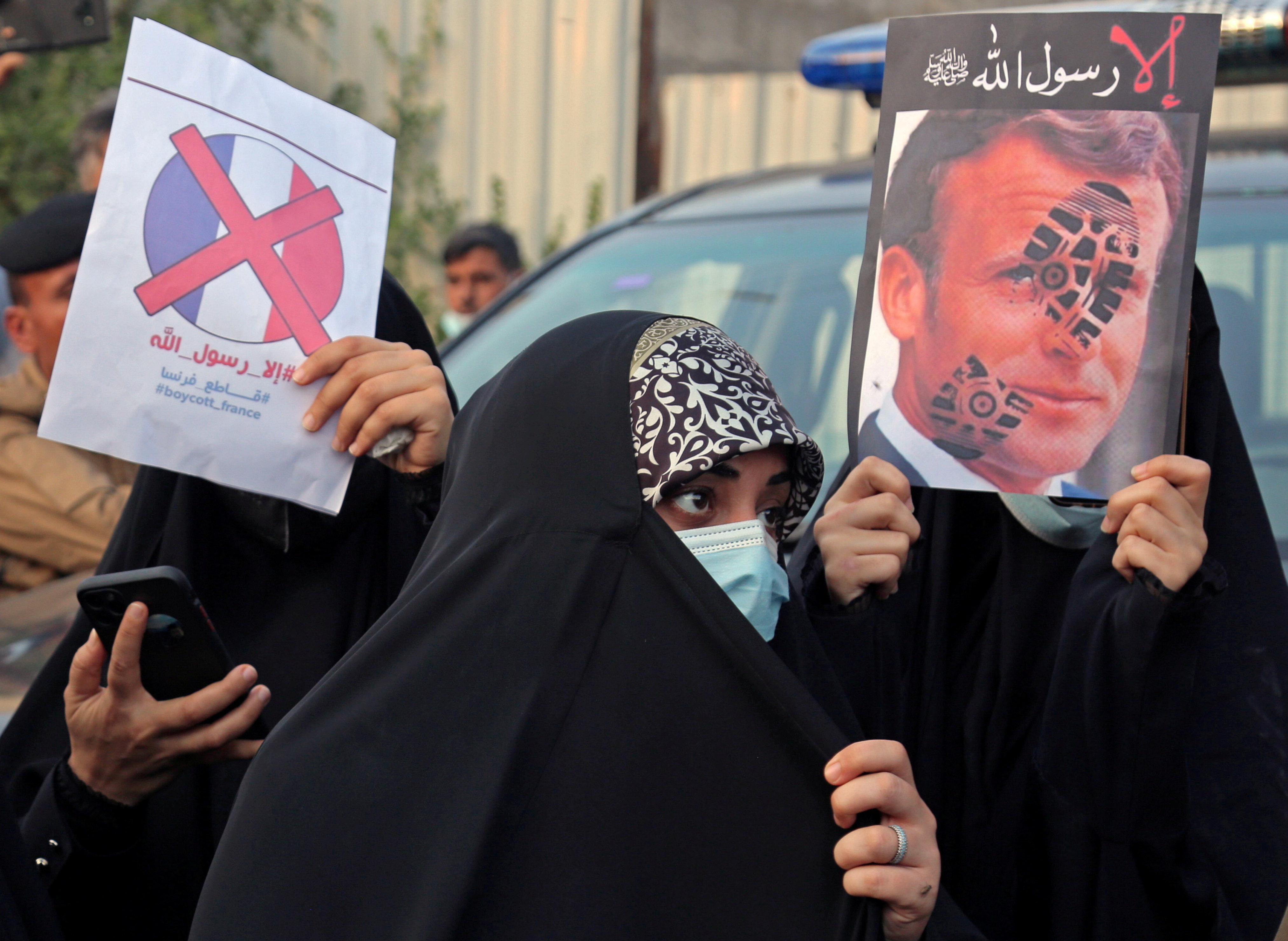 Protests have been held in Iraq, Turkey and the Gaza Strip, with demonstrators in the Iraqi capital, Baghdad, burning the French flag and stepping on images of French President Emmanuel Macron.